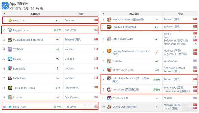 8月全球iOS收入Top 10:国产手游首次占比60% 王者荣耀全球第一